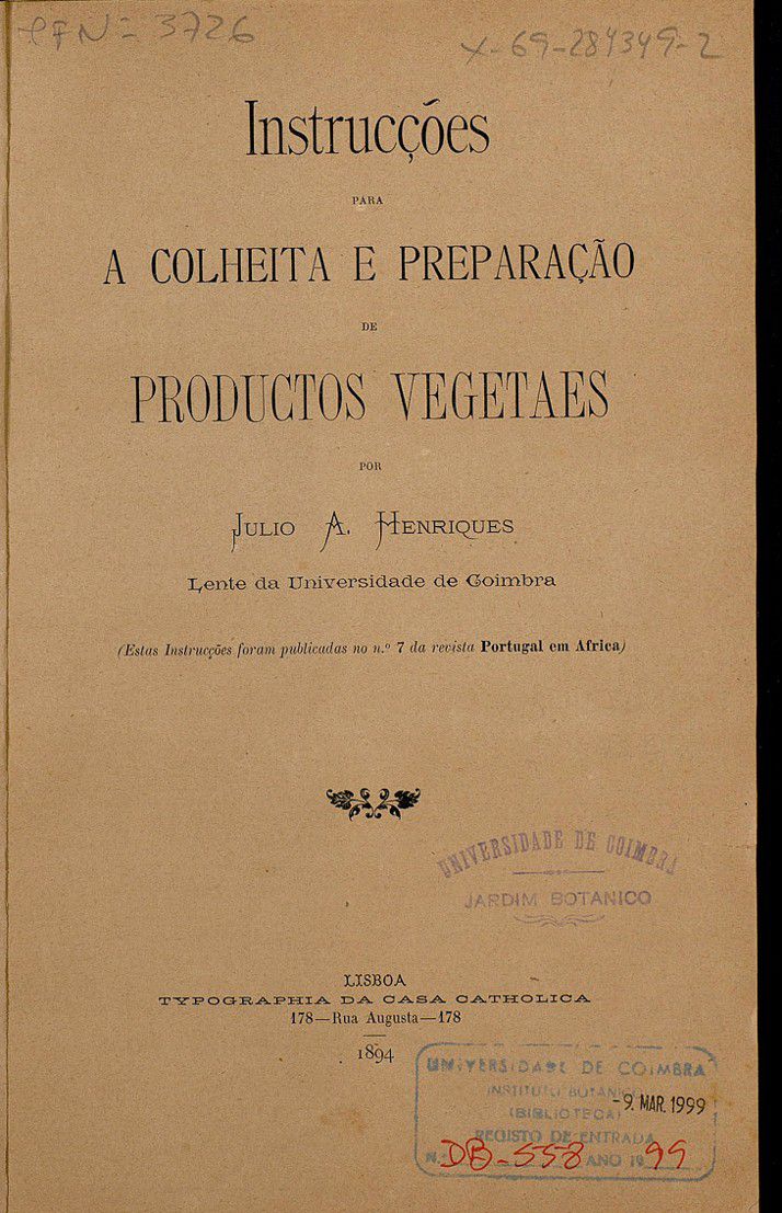Instrucções para a colheita e preparação de productos vegetaes