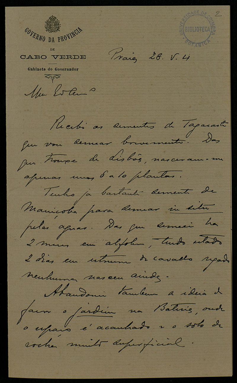 [Carta], 1904 Maio 28, Praia, [a Júlio Henriques, Coimbra]
