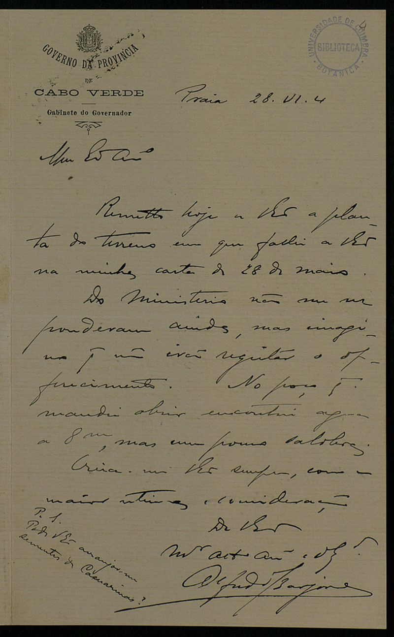 [Carta], 1904 Jun. 28, Praia, [a Júlio Henriques, Coimbra]