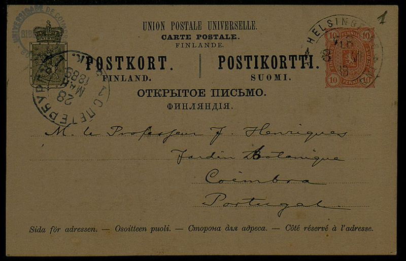 Postkort, 1889 Jun. 7, Helsingfors, a Júlio Henriques, Coimbra