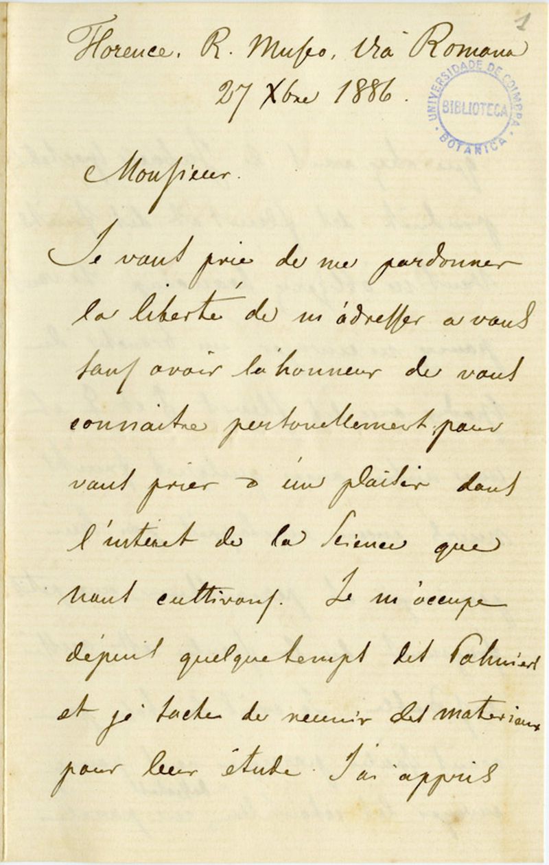 [Lettre], 1886 déc. 27, Florence, [à Júlio Henriques, Coimbra]
