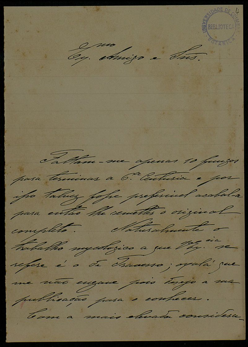 [Carta], 1910 Fev. 20, Lisboa, [a Júlio Henriques, Coimbra]