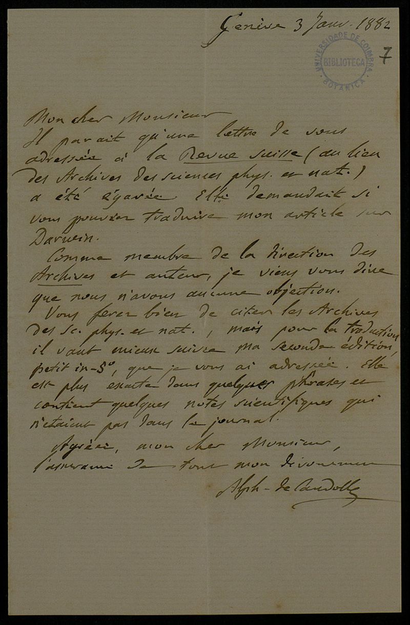 [Lettre], 1882 jan. 3, Genève, [à] Júlio Henriques, Coimbra