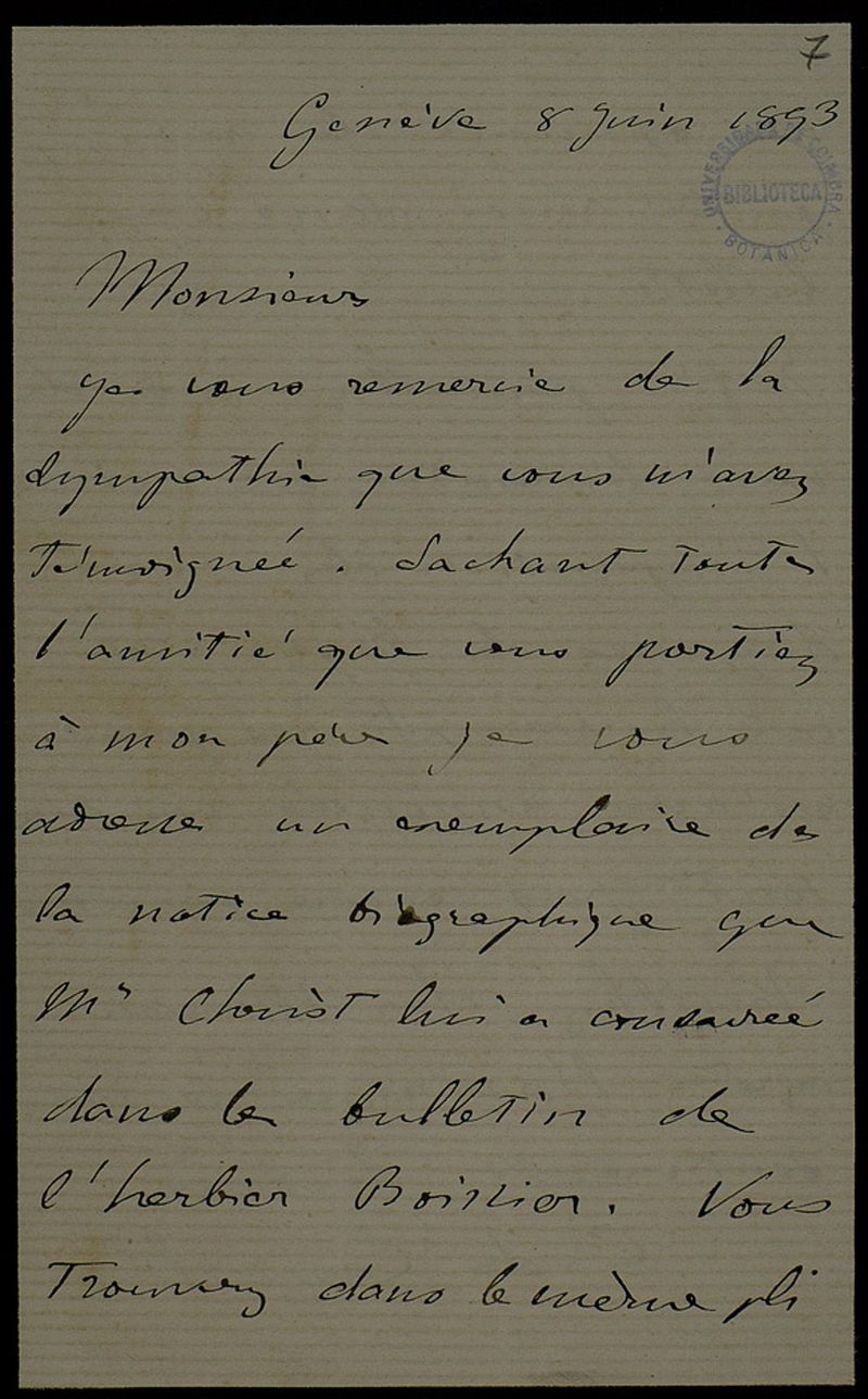 [Lettre], 1893 juin 8, Genève, [à] Júlio Henriques, Coimbra