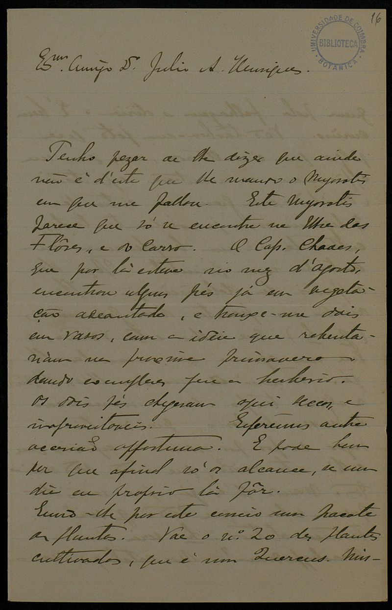 Henriques, Júlio Augusto, 1838-1928 (destinatário)