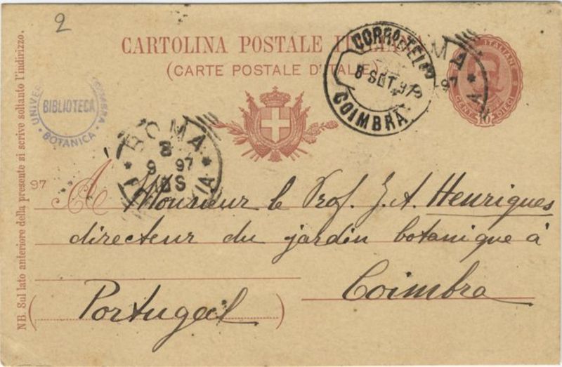 [Carte postale], 1897, sept. 03, Roma, [à] J[úlio] A[ugusto] Henriques, Coimbra