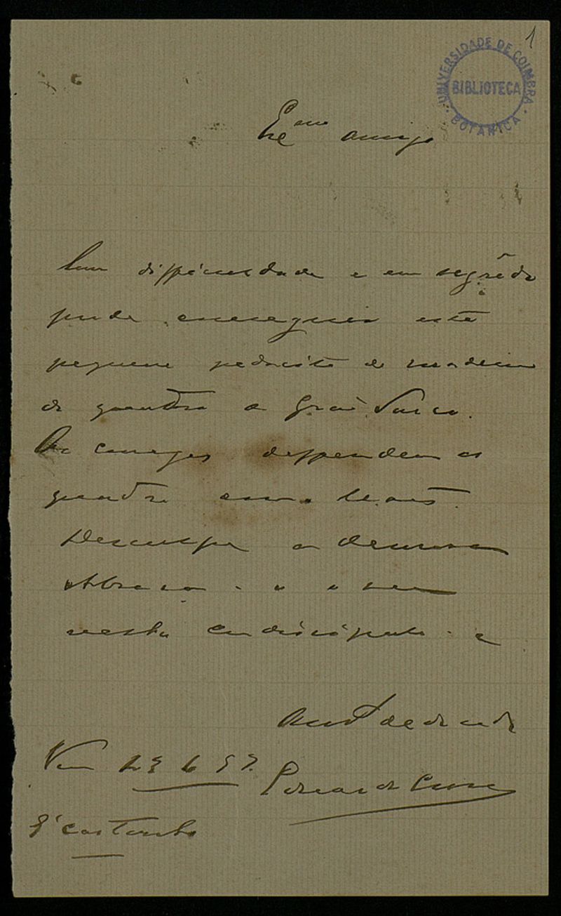 Henriques, Júlio Augusto, 1838-1928 (destinatário)