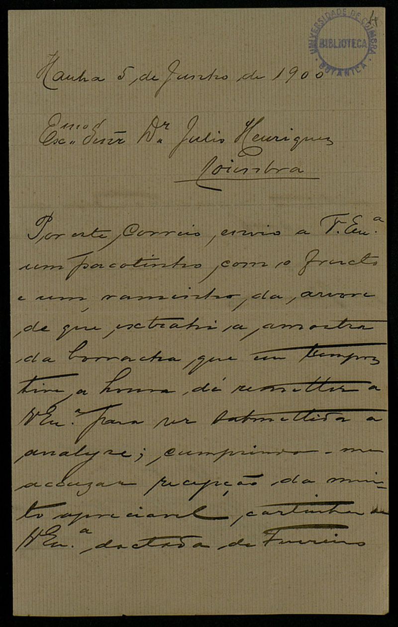 [Carta], 1900 Jun. 5, Hanha, a Júlio Henriques, Coimbra