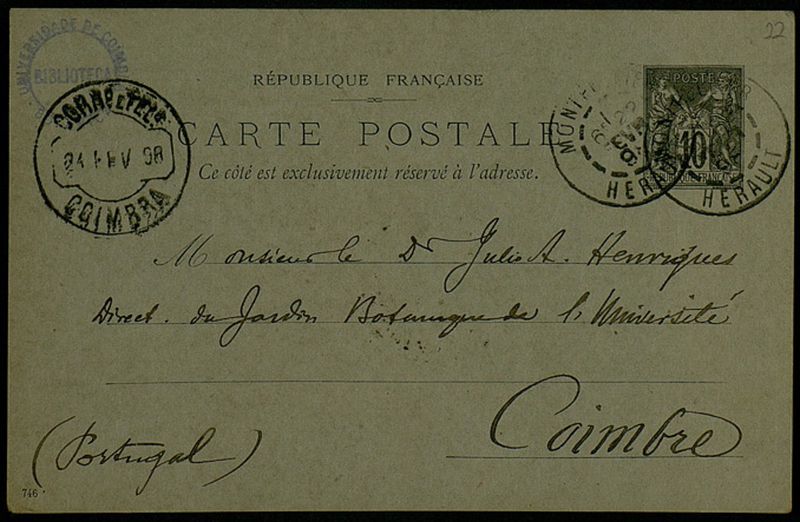 Carte postale, 1897 fév. 22, Montpellier, a Júlio Henriques, Coimbra