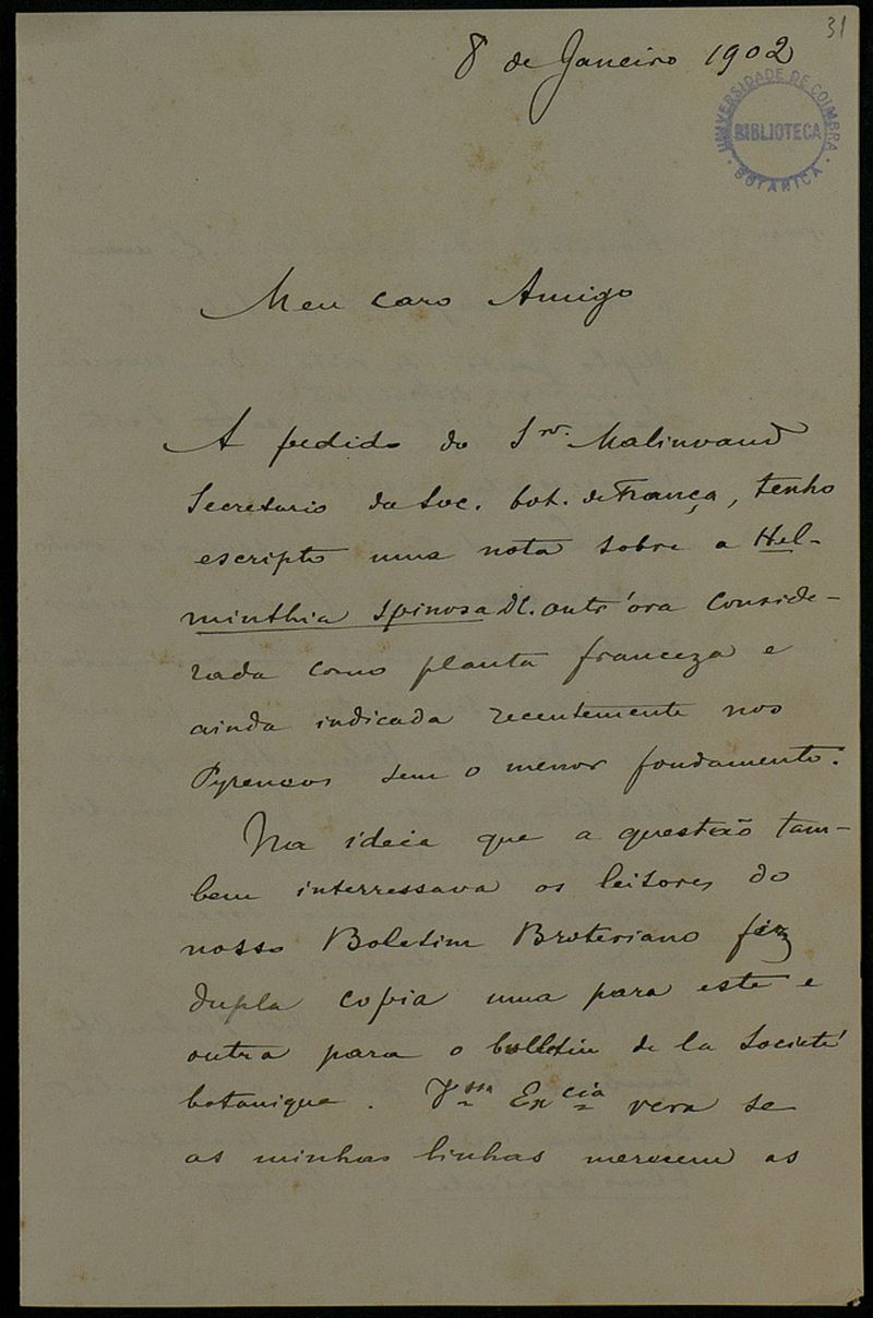[Carta], 1902 Jan. 8, [Montpellier], a Júlio Henriques, Coimbra