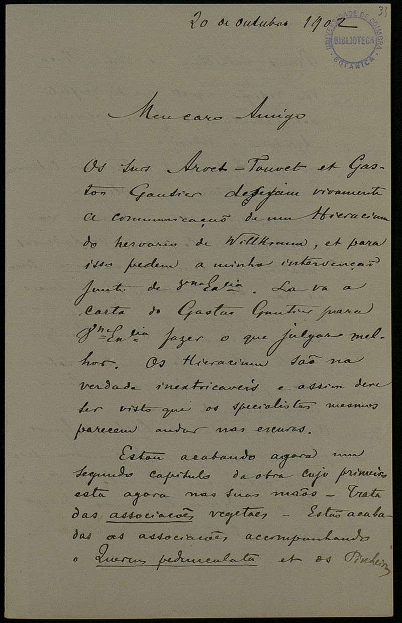 [Carta], 1902 Out. 20, [Montpellier], a Júlio Henriques, Coimbra
