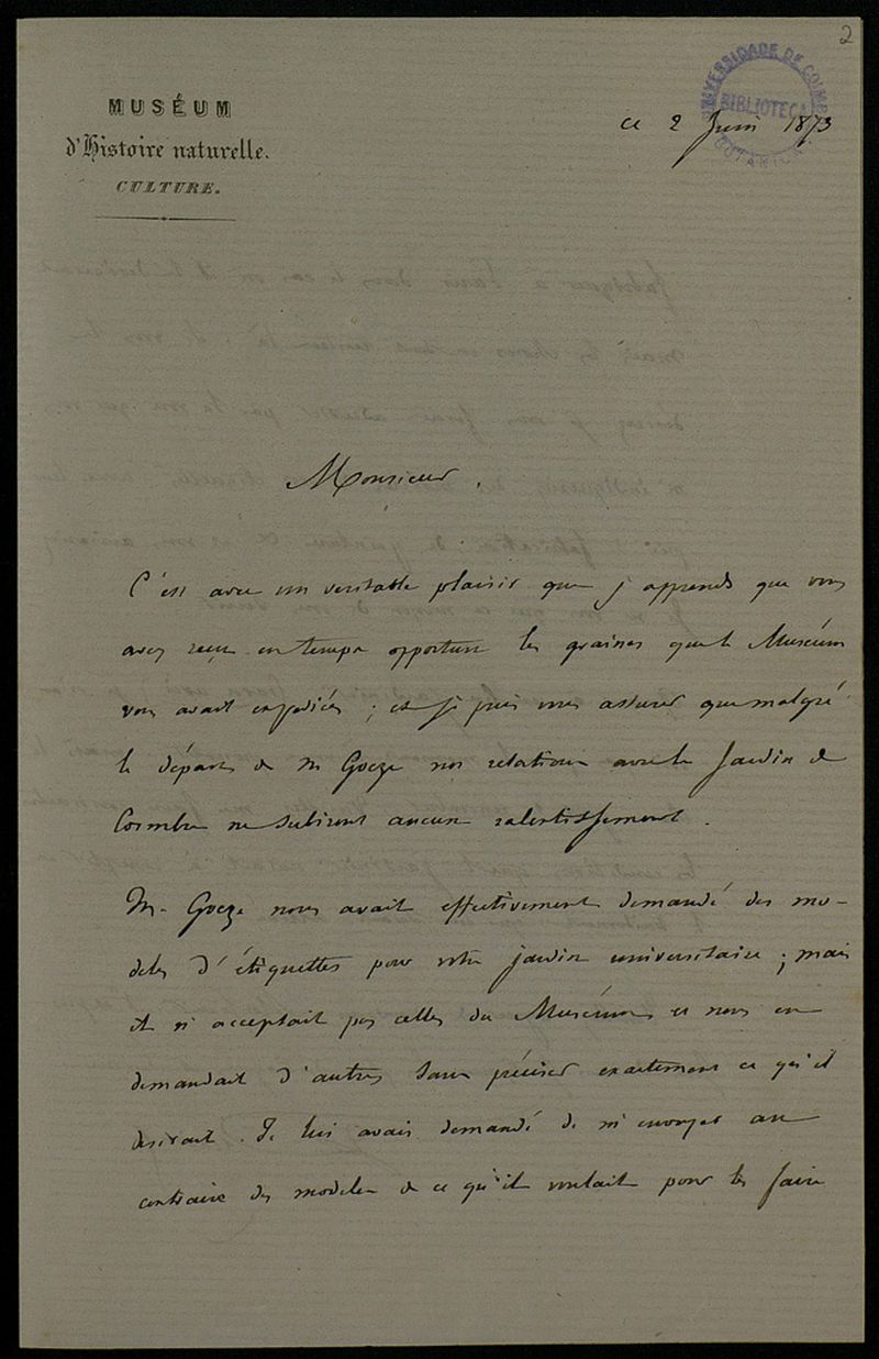 [Lettre], 1873 juin 2, [Paris, à] Monsieur [Júlio Henriques, Coimbra]