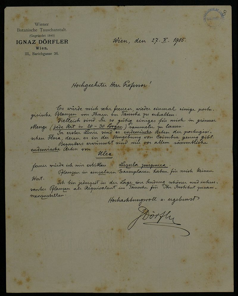 Dörfler, Ignaz, 1866-1950 (correspondente)