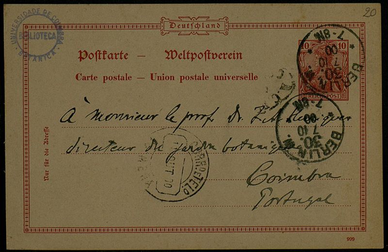Postkarte, 1900 oct. 7, Berlin, [à Júlio Henriques], Coimbra