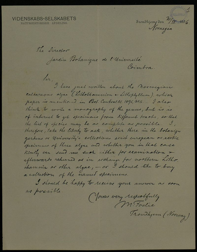 [Letter], 1896 Apr. 30, Trondhjem, [to Júlio Henriques], Coimbra