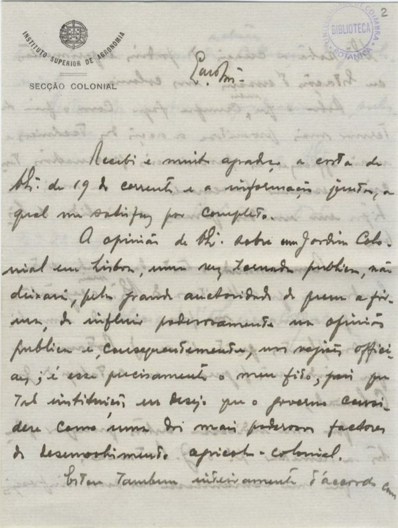 Em papel timbrado de "Instituto Superior de Agronomia - Secção Colonial".