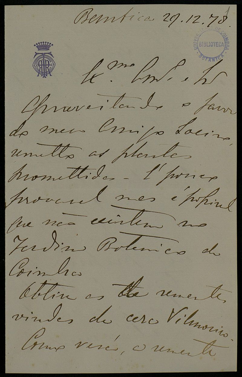 [Carta], 1878 Dez. 29, Bemfica, [a Júlio Henriques] Coimbra