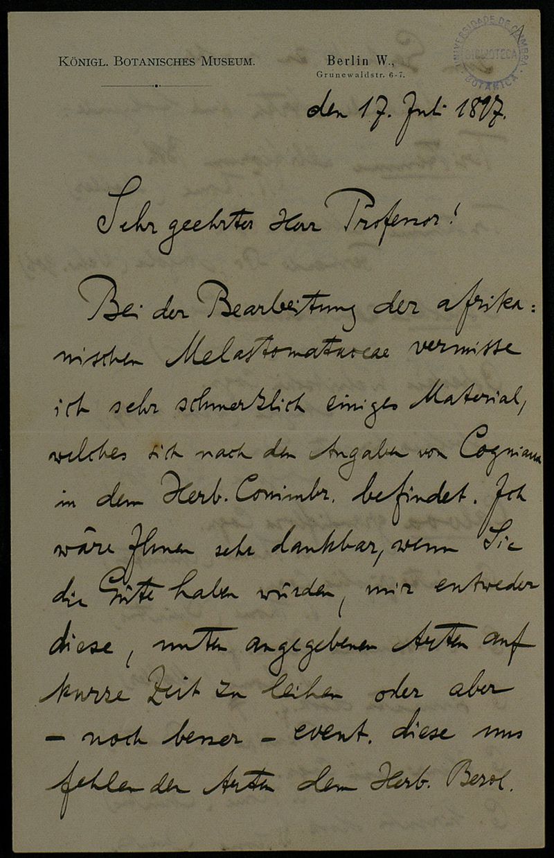 [Brief], 1897 Juli 17, Berlin, [an Júlio Henriques], Coimbra
