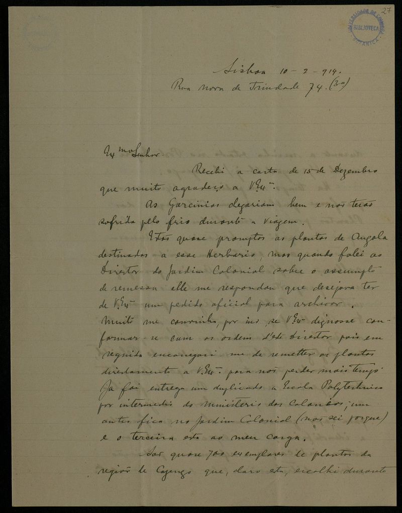 [Carta], 1914 Fev. 10, Lisboa, [a Júlio Henriques, Coimbra]