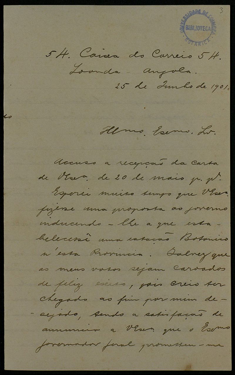 [Carta], 1901 Nov. 30, Loanda, [a Júlio Henriques, Coimbra]