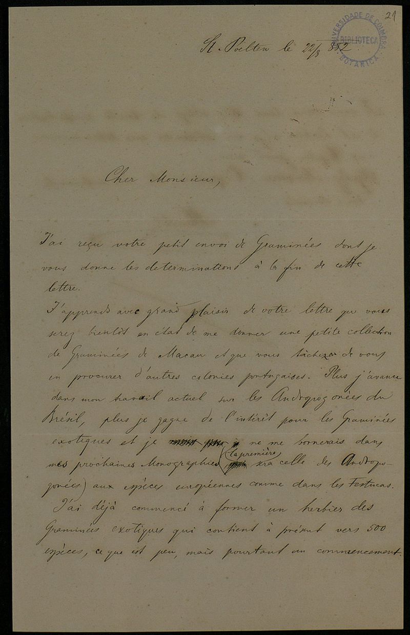 [Lettre], 1882 août 22, St. Poelten, [à] Monsieur [Júlio Henriques], Coimbra