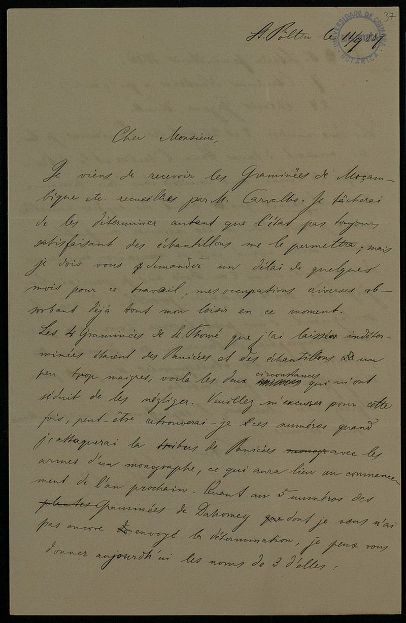 [Lettre], 1887 sept. 11, St. Poelten, [à] Monsieur [Júlio Henriques], Coimbra
