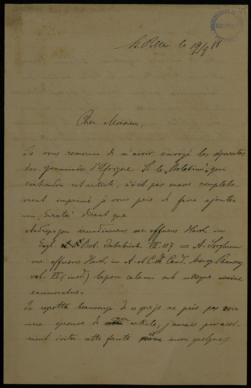 [Lettre], 1888 sept. 19, St. Poelten, [à] Monsieur [Júlio Henriques], Coimbra