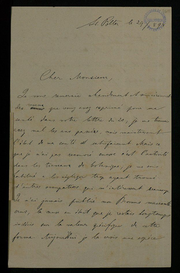 [Lettre], 1894 jan. 29, St. Poelten, [à] Monsieur [Júlio Henriques], Coimbra