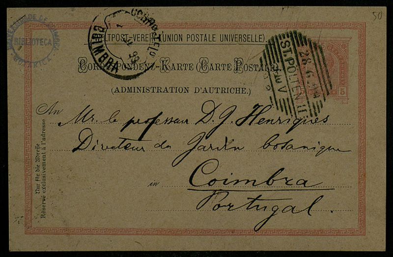 Correspondenz-Karte, 1899 juin 28, St. Poelten, [à] D. J. Henriques, Coimbra