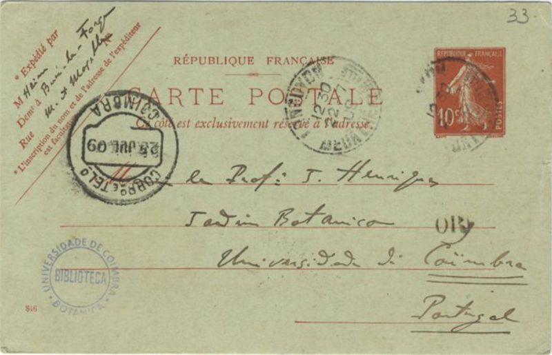 [Carte postale], 1909 juil. 22, Buré-la-Forge, [Longuyon], [à] J[úlio] Henriques, Coimbra