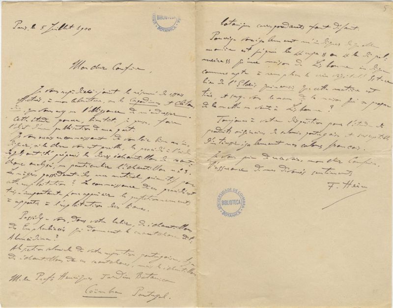 [Lettre], 1900 juil. 05, Paris, [à Júlio] Henriques, Coimbra