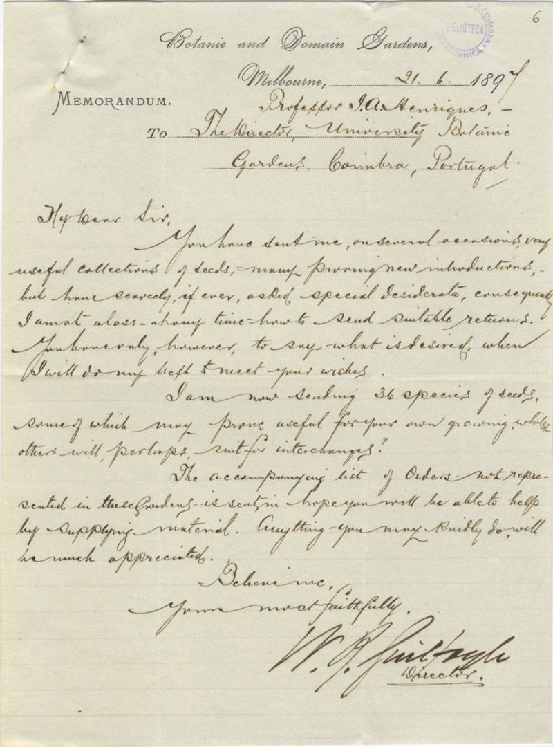 [Letter], 1897 June 21, Melbourne [to] J[úlio] A[ugusto] Henriques, Coimbra