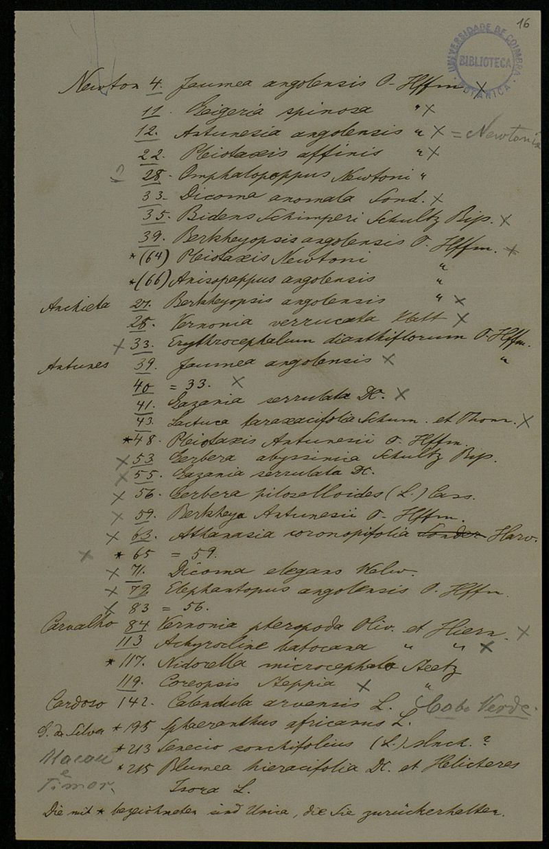 Anexa uma folha contendo uma lista com nomes de plantas.