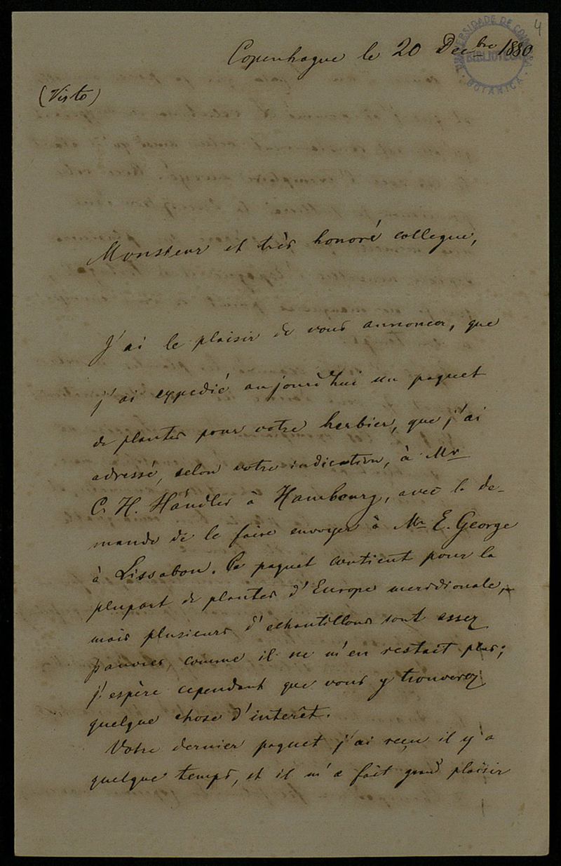 [Lettre], 1880 déc. 20, Copenhague, [à] Monsieur [Júlio Henriques], Coimbra