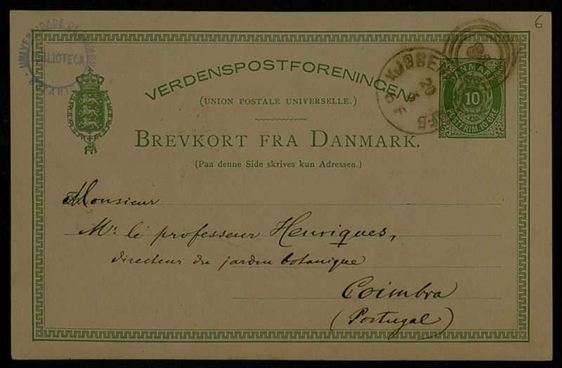 Verdenspostforeningen, 1881 mars 19, Copenhague, [à] Monsieur [Júlio] Henriques, Coimbra