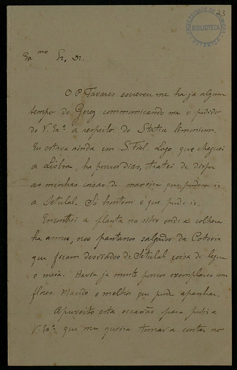 Henriques, Júlio Augusto, 1838-1928 (destinatário)