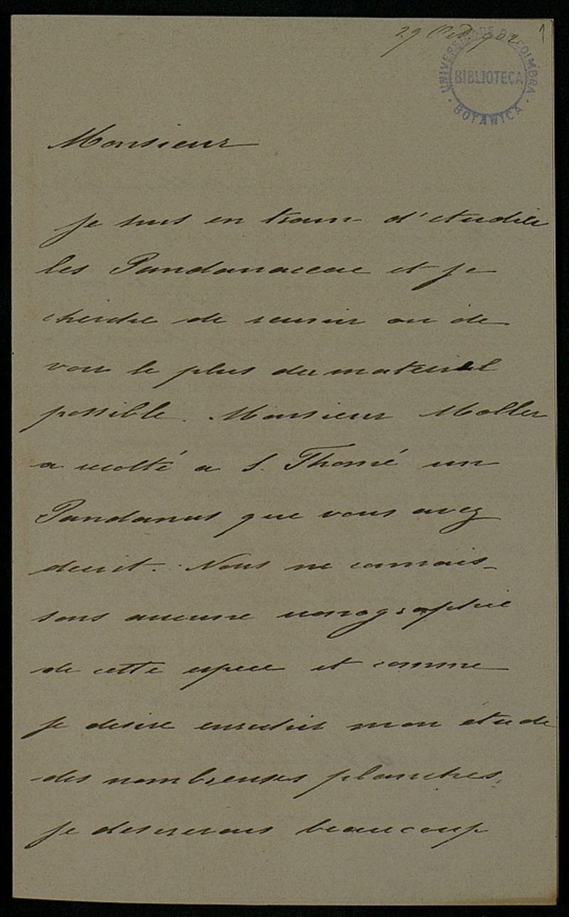 [Lettre], 1902 oct. 29, Florence, [à Júlio Henriques, Coimbra]