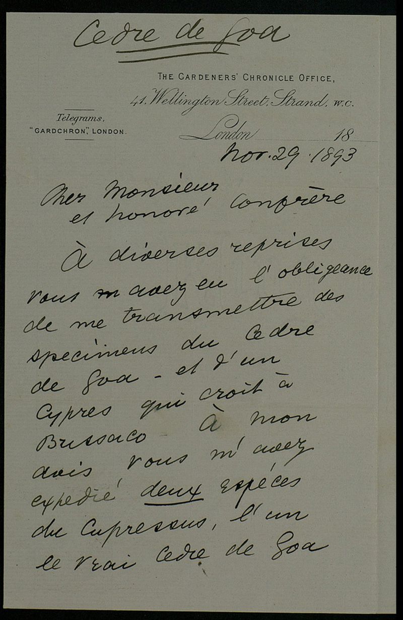 [Lettre], 1893 Nov. 29, London, [to Júlio Henriques, Coimbra]