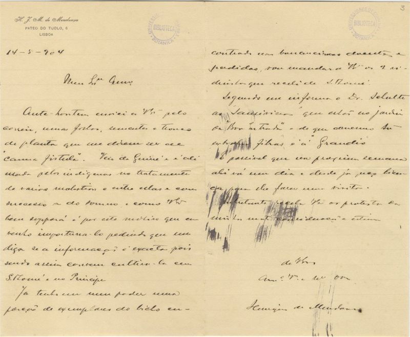 [Carta], 1904 Maio 14, Lisboa, [a Júlio Henriques, Coimbra]