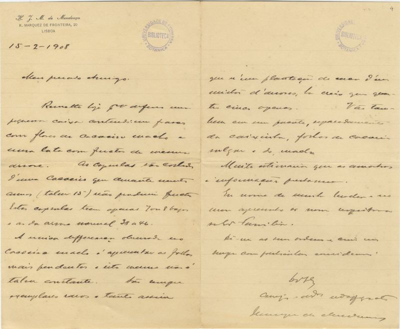 [Carta], 1908 Fev. 15, Lisboa, [a Júlio Henriques, Coimbra]