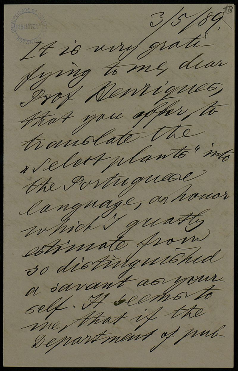 [Letter], 1889 May 3, [s.l., to Júlio Henriques], Coimbra