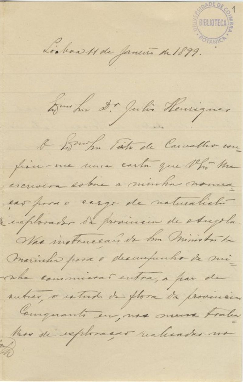 [Carta], 1899 Jan.,11 Lisboa, [a Júlio Henriques, Coimbra]