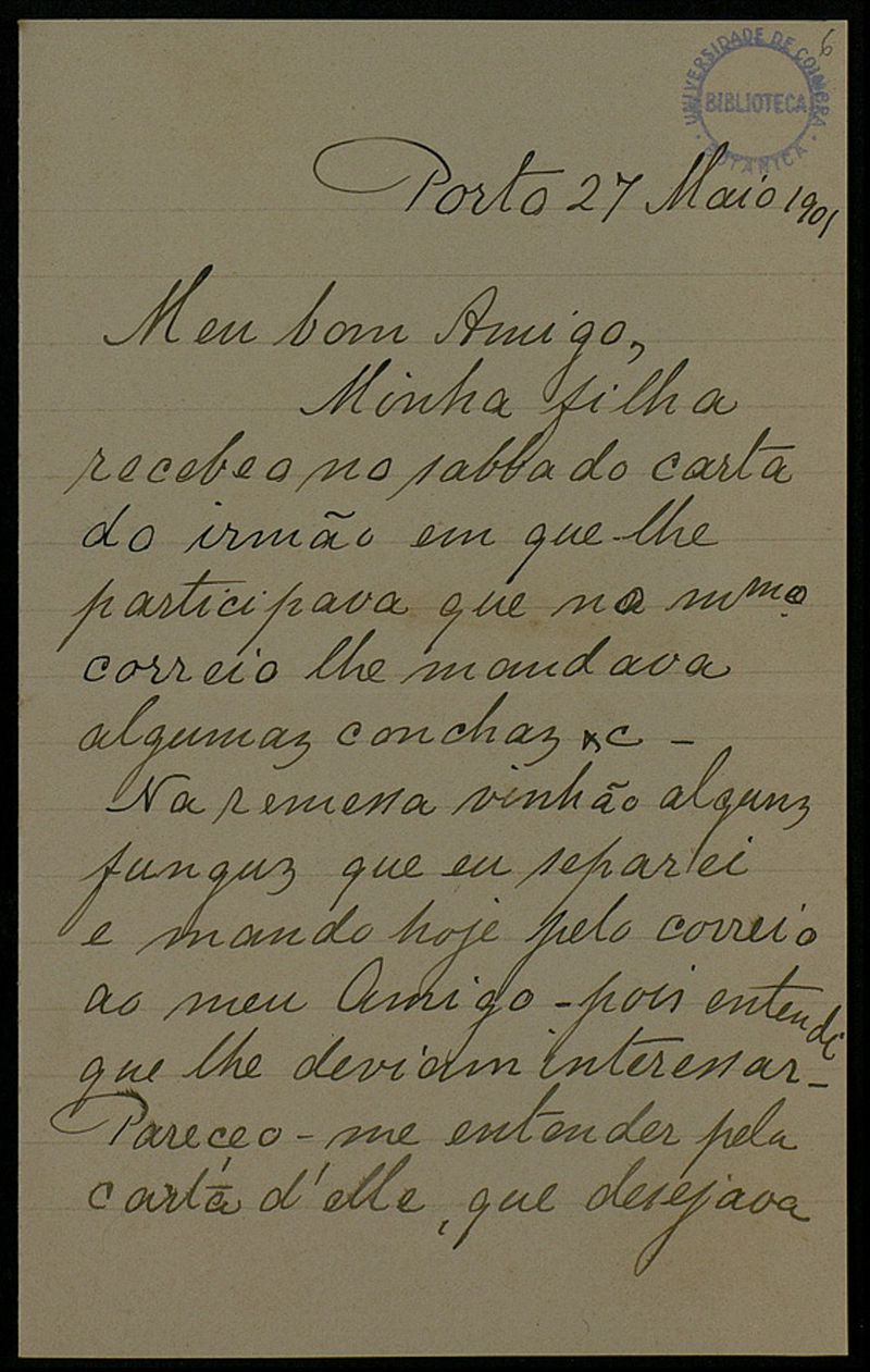 [Carta], 1901 Maio 27, Porto, [a Júlio Henriques], Coimbra