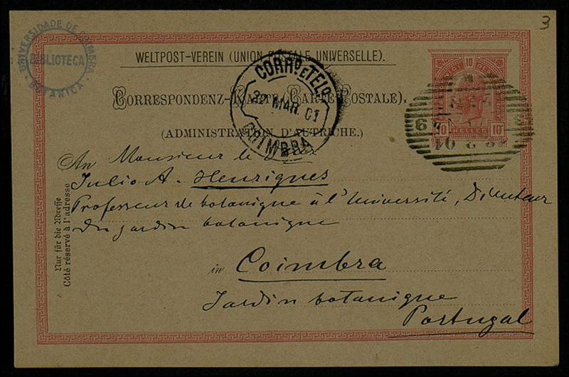 Correspondenz-Karte, 1901 März 18, Wien, an Monsieur de Dr. Julio A. Henriques, Coimbra