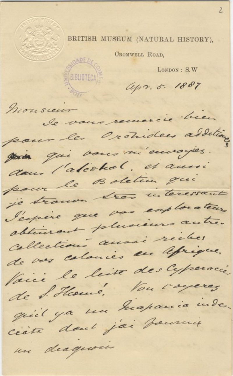 [Lettre], 1887 avr. 05, London, [à Júlio Henriques, Coimbra]
