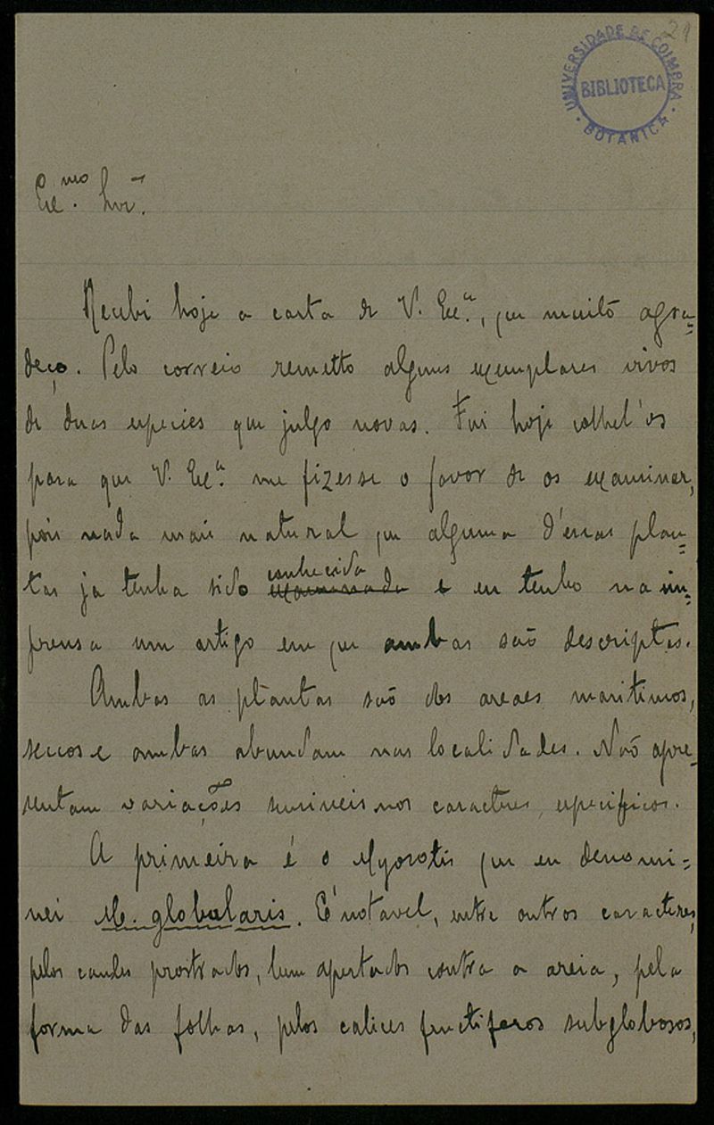 [Carta], 1901 Maio 3, Porto, [a Júlio Henriques, Coimbra]