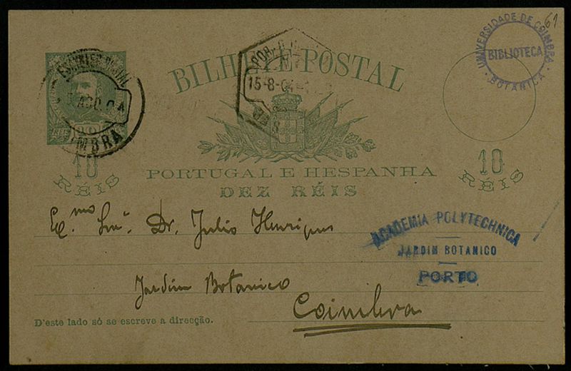 Bilhete Postal, 1904 Ago. 15, Porto, a Dr. Júlio Henriques, Coimbra