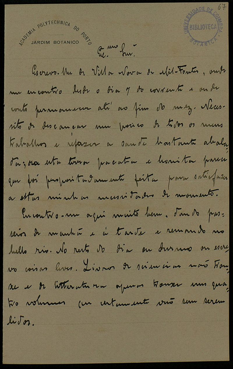 Papel timbrado de: Academia Polythechnica do Porto - Jardim Botanico.