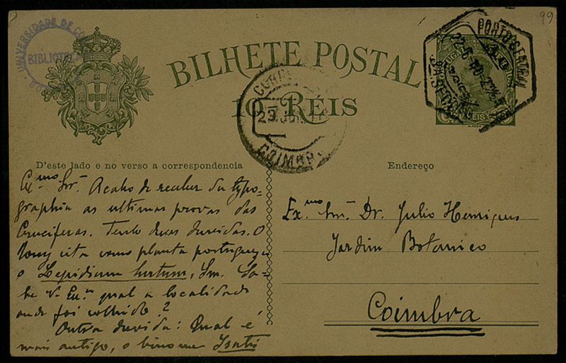 Bilhete Postal, 1910 Jun. 22, Porto, a Dr. Júlio Henriques, Coimbra