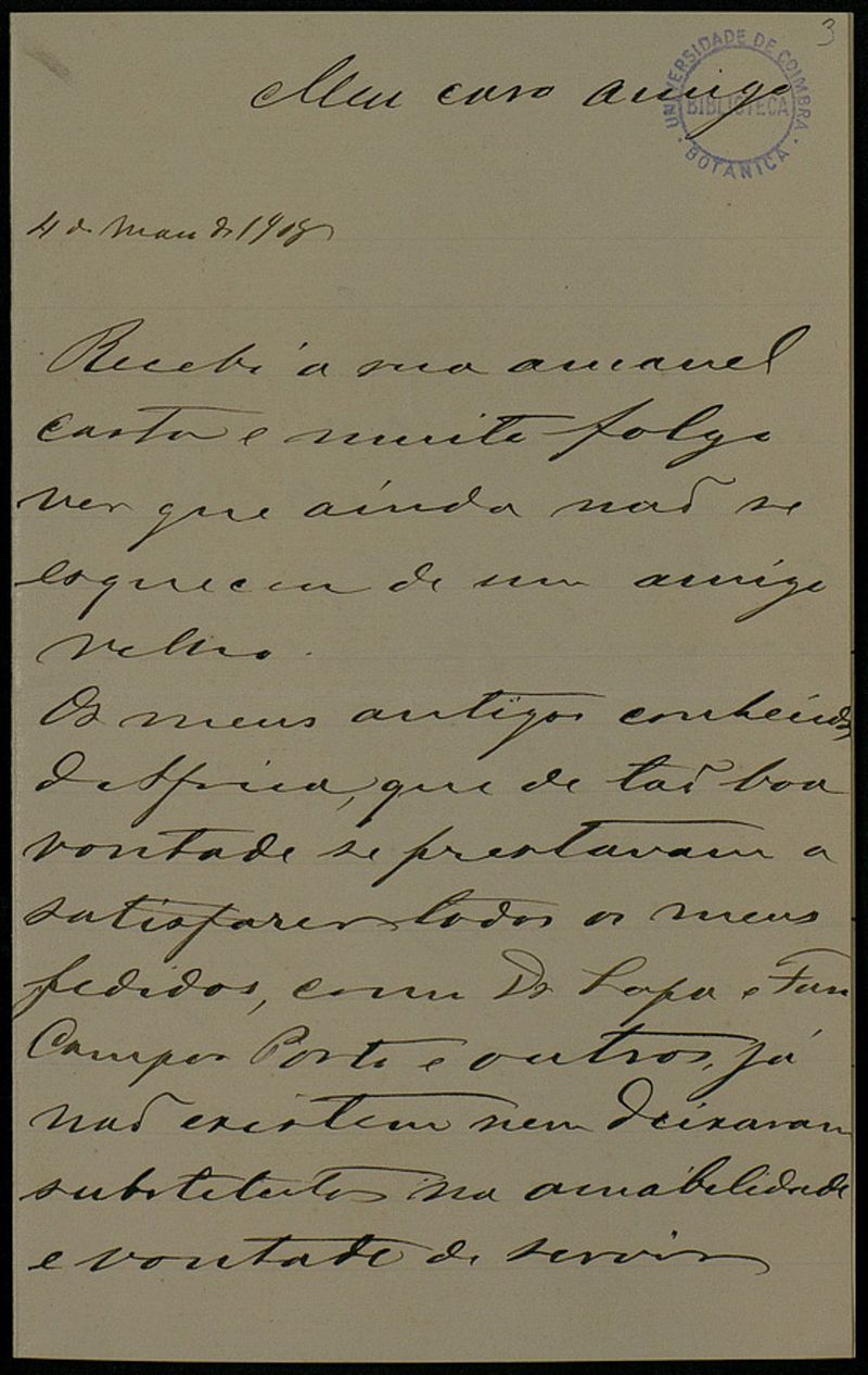 [Carta], 1908 Mar. 4, [Lisboa, a Júlio Henriques], Coimbra